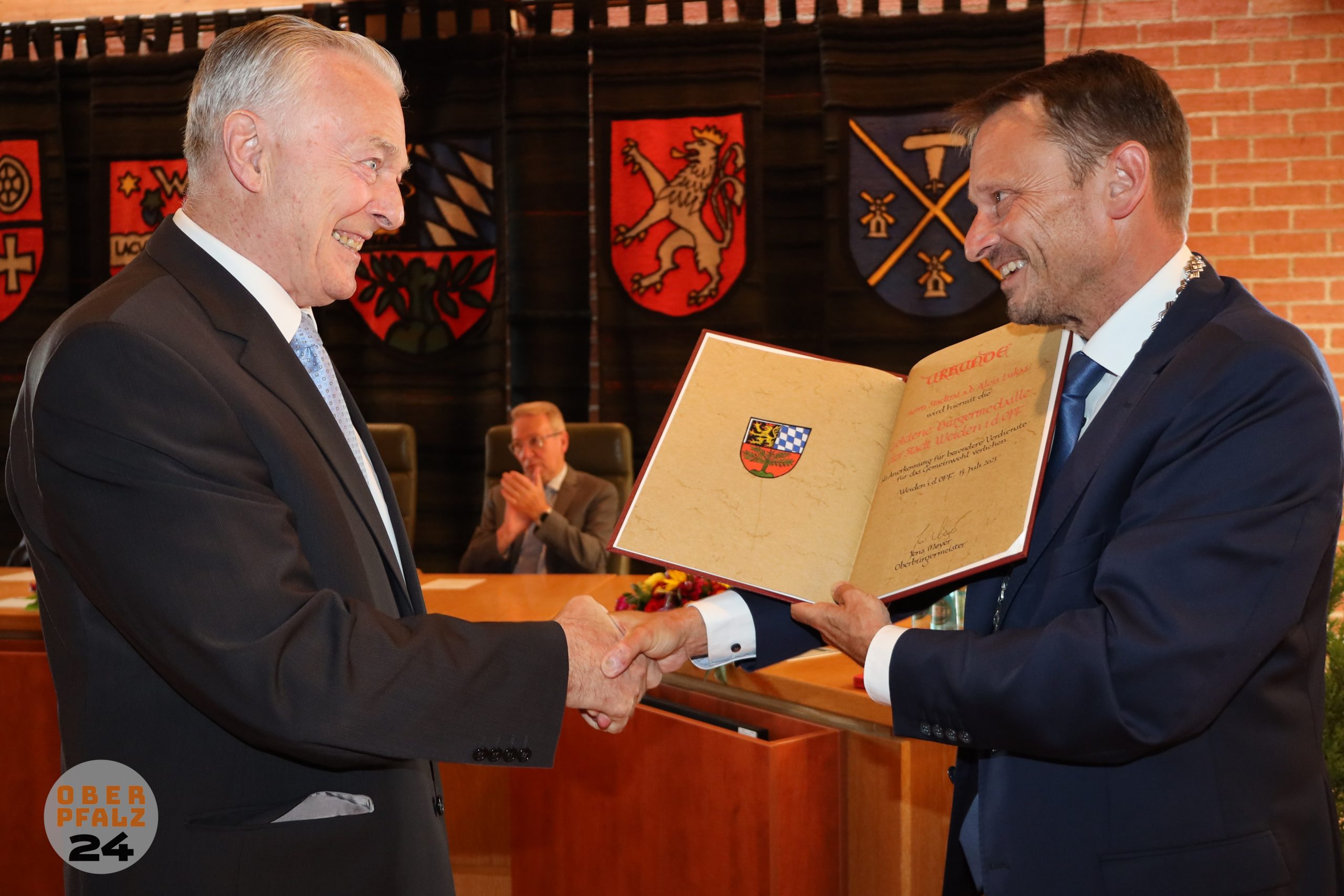 WEIDEN. In einer festlichen Zeremonie im Neuen Rathaus wurde gestern Abend Alois Lukas, ehemaliges Mitglied des Stadtrats, mit der Goldenen Bürgermedaille für seine außergewöhnlichen Verdienste um das Gemeinwohl der Stadt ausgezeichnet. Der einstimmige Beschluss des Stadtrates unterstreicht die Anerkennung und Wertschätzung für Lukas‘ langjähriges Engagement. Oberbürgermeister Jens Meyer bezeichnete die Auszeichnung als Krönung für ein unermüdliches Lebenswerk.