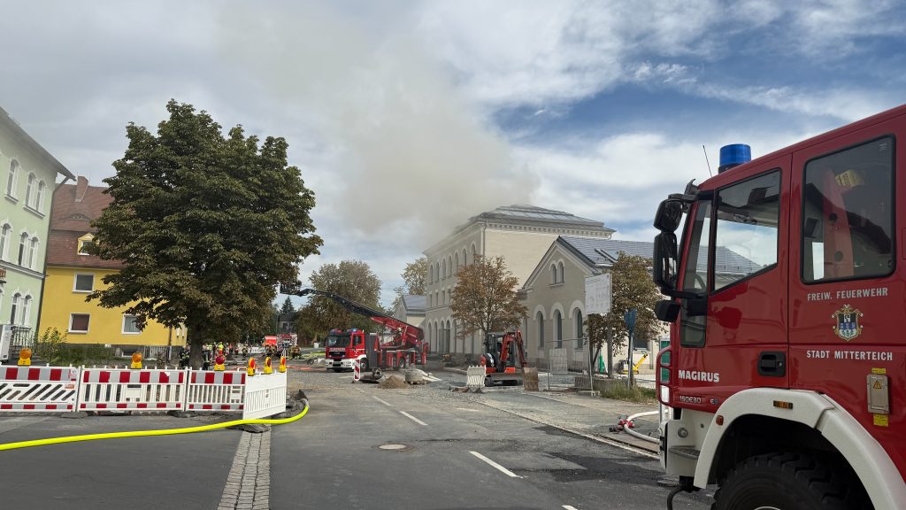 WIESAU – Nach dem Brand im Bahnhofsgebäude in Wiesau am Dienstagvormittag hat die Polizeiinspektion Tirschenreuth eine erste Pressemitteilung veröffentlicht. Demnach brach das Feuer gegen 9.45 Uhr im Dachstuhl des Gebäudes aus, das derzeit umfangreich saniert wird.