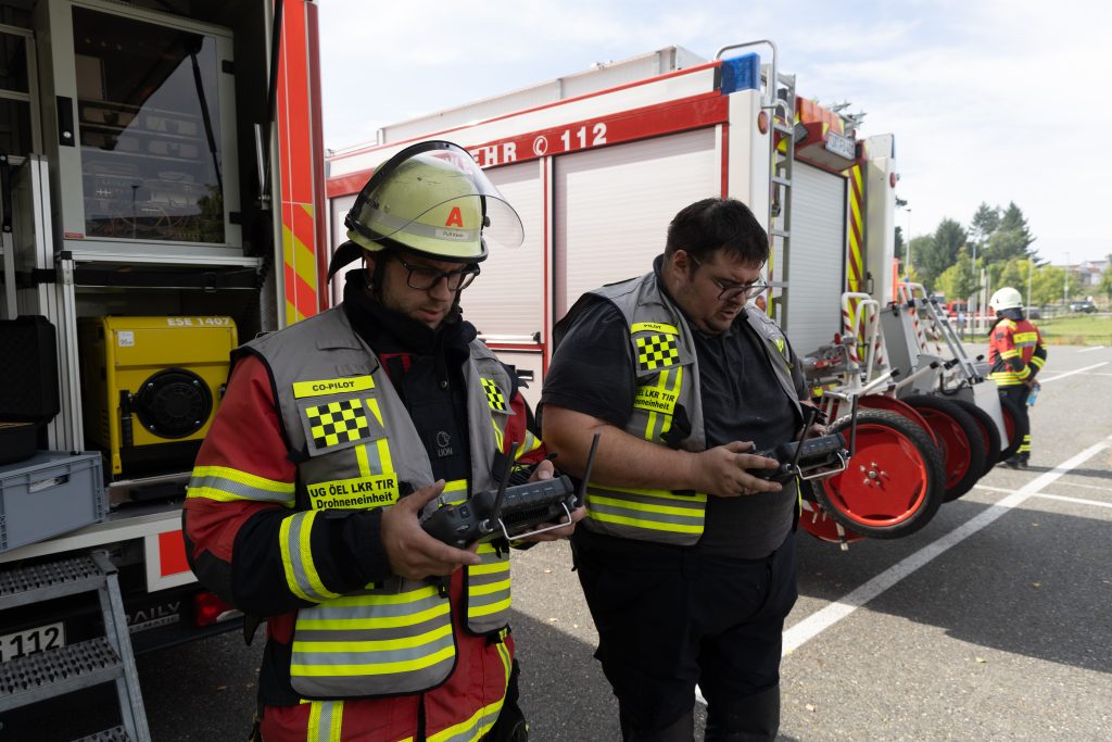 Die Feuerwehr war mit zahlreichen Einsatzkräften vor Ort. Drei Drehleitern kamen bei der Brandbekämpfung zum Einsatz, zudem unterstützte eine Fachfirma die Arbeiten. Die Löscharbeiten gestalteten sich aufwendig und dauern noch an.