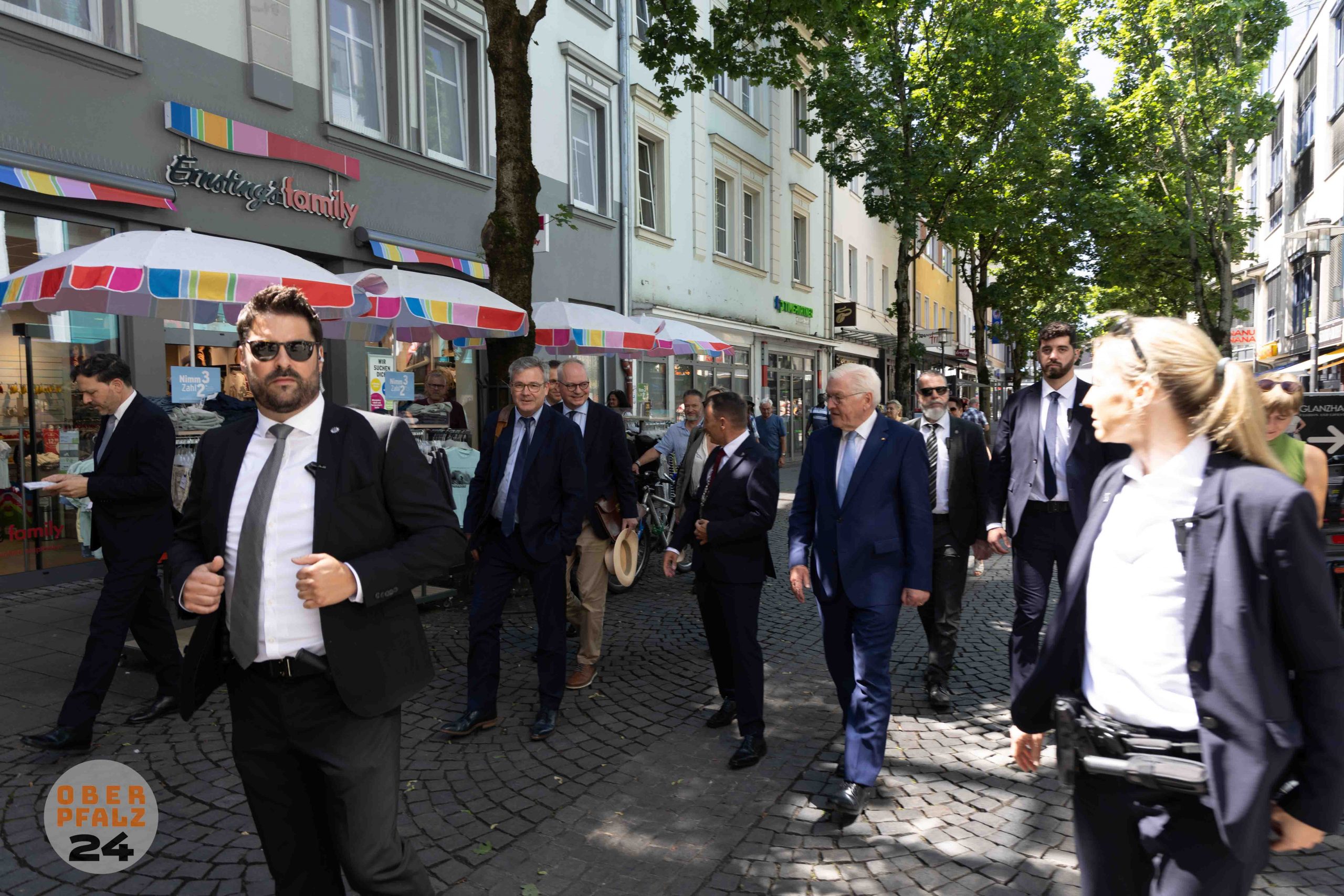 WEIDEN. Im Rahmen des Programms „Ortszeit“ verlegte der deutsche Bundespräsident Frank-Walter Steinmeier seinen Amtssitz für drei Tage nach Weiden in der Oberpfalz. Um die Sicherheit des Bundespräsidenten zu gewährleisten, sind zahlreiche Beamte des Polizeipräsidium Oberpfalz sowie des Bundeskriminalamtes (BKA) im Einsatz. Die Männer und Frauen in den „dunklen“ Anzügen sind dabei an ihrem charakteristischen „Knopf im Ohr“ zu erkennen. Auch die örtliche Polizei zeigt sich zufrieden mit den bisherigen Abläufen, wie Anna Beyer vom Polizeipräsidium Oberpfalz mitteilt.