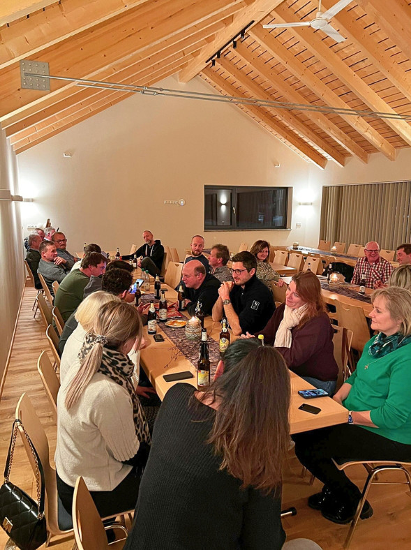 Norbert Schönberger stellte die Entstehung des Gebäudes vor. Die Planungen reichen bis ins Jahr 2018 zurück, der Baubeginn erfolgte 2024. Rund 1.500 Arbeitsstunden wurden bislang von der Dorfgemeinschaft geleistet. Ein Großteil der Kosten wird über Fördermittel refinanziert. Künftig soll das Haus durch Veranstaltungen belebt werden und vor allem als zentraler Treffpunkt für die Dorfgemeinschaft dienen.