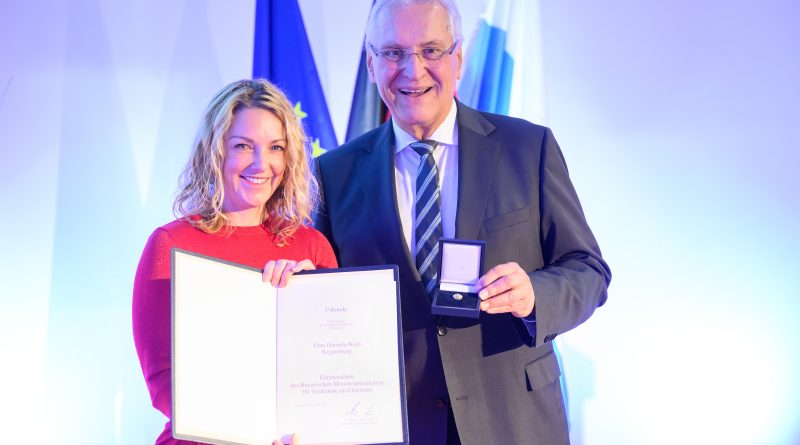 REGENSBURG. Bayerns Innenminister Joachim Herrmann hat in Nürnberg das Ehrenzeichen des Bayerischen Ministerpräsidenten für Verdienste im Ehrenamt an 60 Personen aus ganz Bayern verliehen. Zwei der Geehrten stammen aus Regensburg: Daniela Weiß und Reinhard Schöftenhuber.