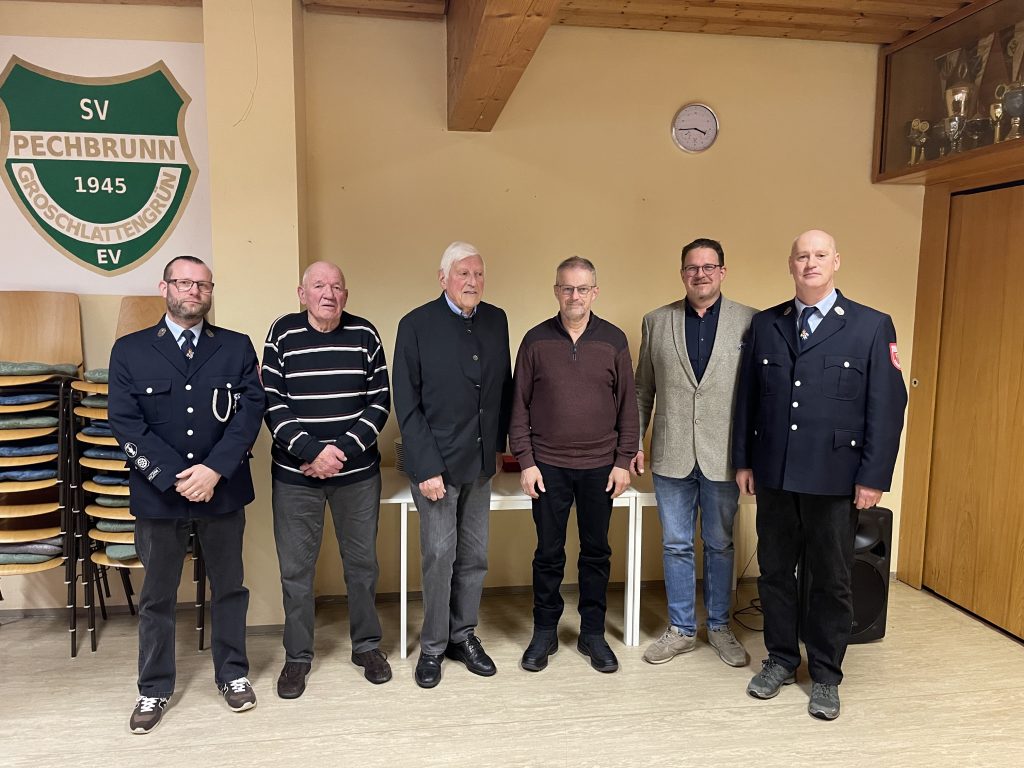 Ein besonderer Höhepunkt der Versammlung war die Ehrung langjähriger Mitglieder. Für 50 Jahre Vereinszugehörigkeit wurden Werner Fleischer und Wolfgang Wegmann ausgezeichnet. Bereits seit 65 Jahren halten Ludwig Menges, Hubert Neumann und Arno Ritz der Pechbrunner Feuerwehr die Treue.