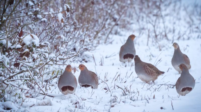 „Mit etwas Glück lassen sich Rebhühner jetzt im Winter in kleinen Gruppen beobachten“, erklärt Dr. Angelika Nelson, Biologin beim Landesbund für Vogel- und Naturschutz (LBV). Diese sogenannten Ketten bestehen aus bis zu 25 Tieren, die gemeinsam in der winterlichen Landschaft auf Nahrungssuche gehen. Besonders wichtig sind dabei Brach- und Blühflächen, auf denen verblühte Pflanzen über den Winter stehen bleiben. Sie bieten dem Rebhuhn nicht nur Nahrung, sondern auch dringend benötigte Deckung.