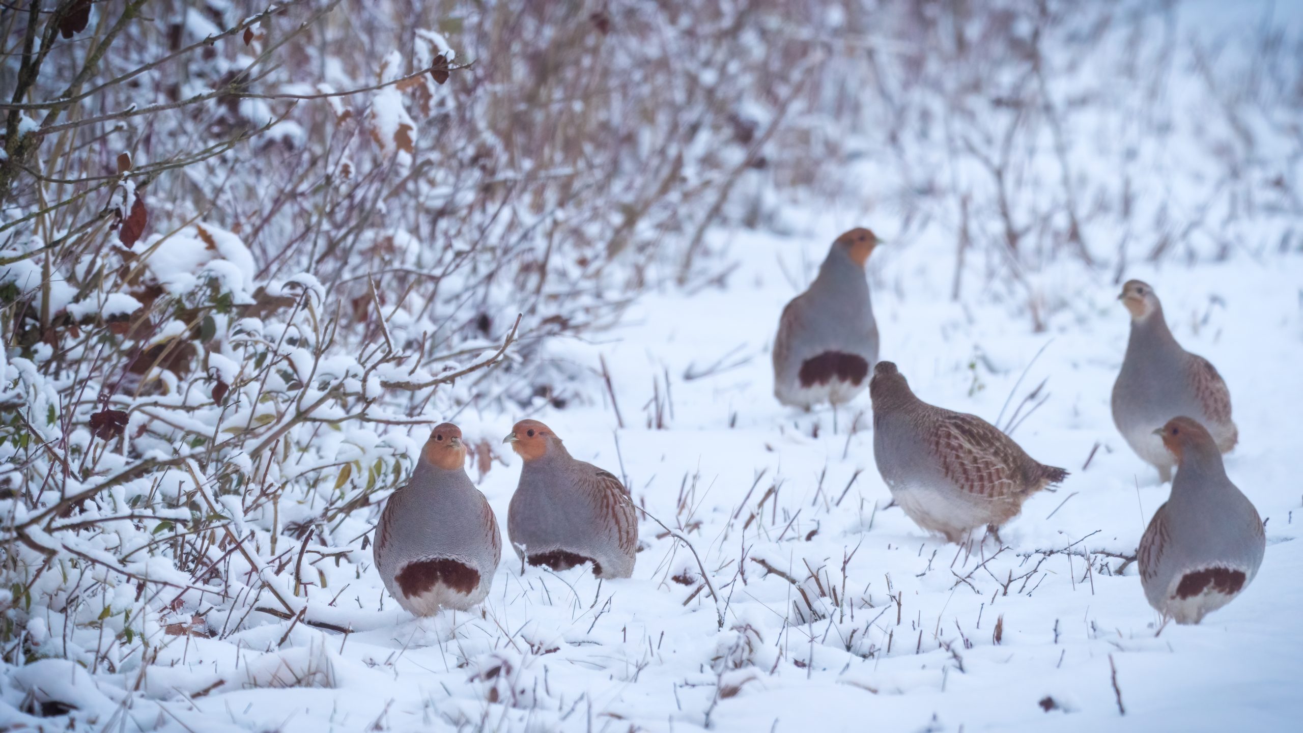 Rebhühner sind Standvögel und bleiben das ganze Jahr über in ihrem Brutgebiet. Junge Tiere aus der vergangenen Brutsaison überwintern häufig gemeinsam mit den Eltern. „Das Leben in der Gruppe bietet viele Vorteile“, so Nelson. „Fressfeinde wie Füchse können früher erkannt werden, außerdem ist die Nahrungssuche gemeinsam erfolgreicher.“