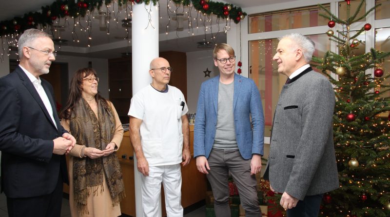Chefarzt Michael Schornbaum, Klinikdirektor Stephan Schumacher und Pflegedienstleiterin Elfriede Schwarzmeier betonen, dass die Versorgung auch im Jubiläumsjahr 2026 und darüber hinaus zunächst gesichert sei.