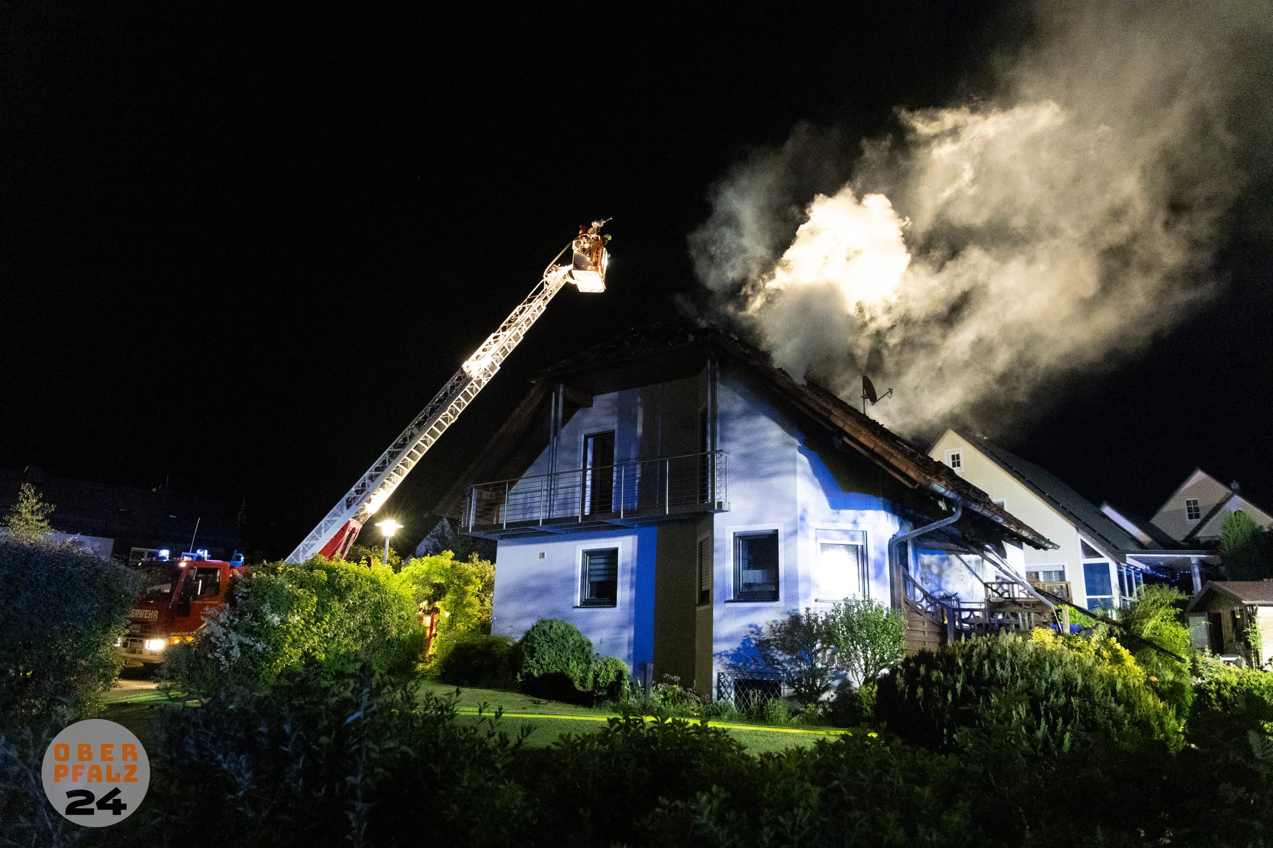 Kastl b. Kemnath. Ein lauter Knall, dichter Rauch, Flammen schlagen aus dem Dachstuhl: Am Dienstagabend kam es gegen 21:20 Uhr zu einem Brand in einem Einfamilienhaus in Kastl bei Kemnath. Die Integrierte Leitstelle Oberpfalz-Nord alarmierte nach dem Alarmstichwort „Explosion / Verpuffung“. Die ersten Einsatzkräfte trafen nur wenige Minuten nach der Alarmierung ein – da stand der Dachstuhl bereits in Brand.