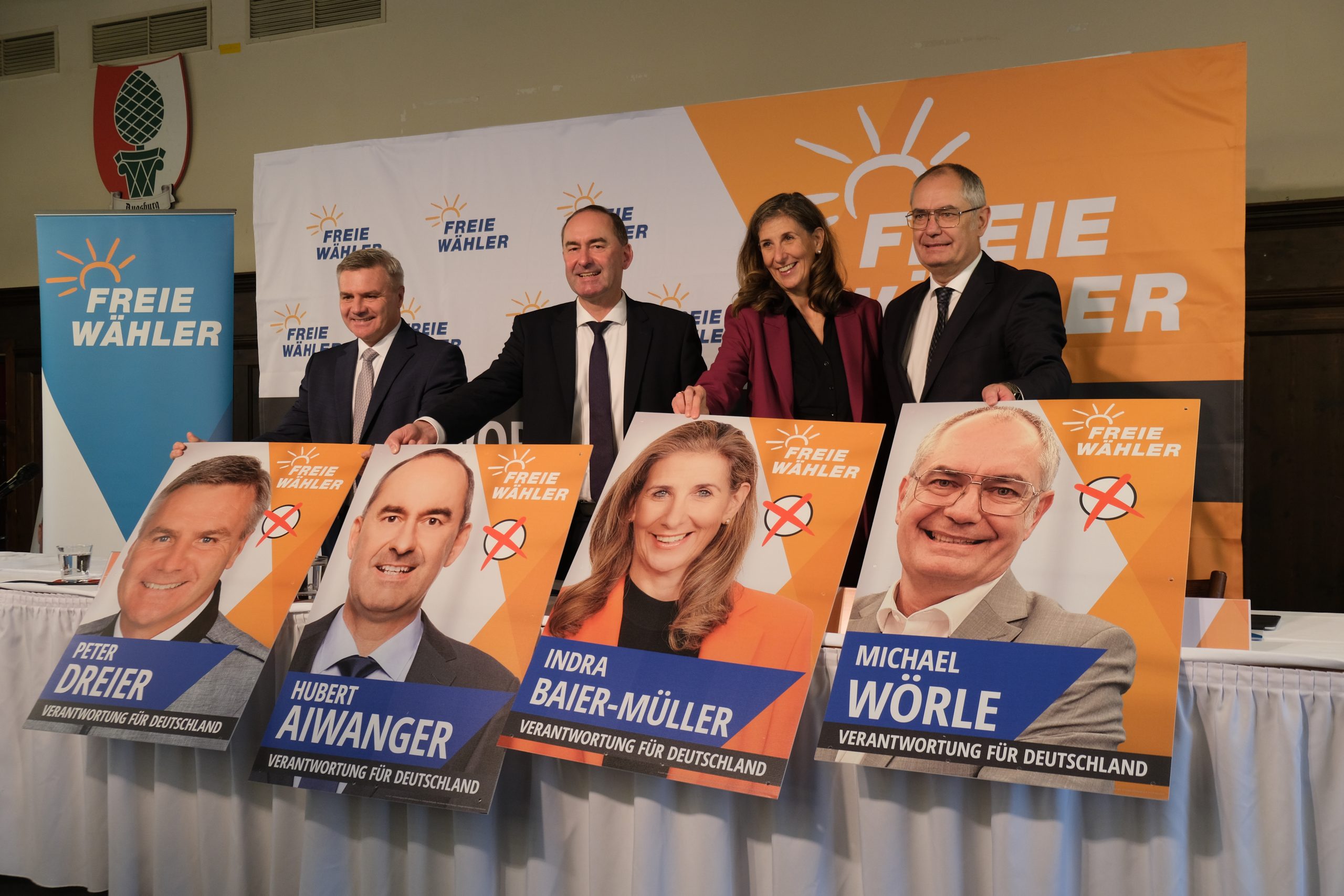 MÜNCHEN. Die FREIEN WÄHLER haben heute ihre Kandidaten für die Bundestagswahl 2025 vorgestellt. Angeführt von Hubert Aiwanger, dem Bundesvorsitzenden der FREIEN WÄHLER und stellvertretenden Ministerpräsidenten Bayerns, setzen die Freien Wähler auf ein starkes Spitzenteam für die kommenden Wahlen. Neben Aiwanger treten auch Indra Baier-Müller, Landrätin im Oberallgäu, Peter Dreier, Landrat im Landkreis Landshut, und Michael Wörle, Bürgermeister von Gersthofen, als aussichtsreiche Direktkandidaten an.
