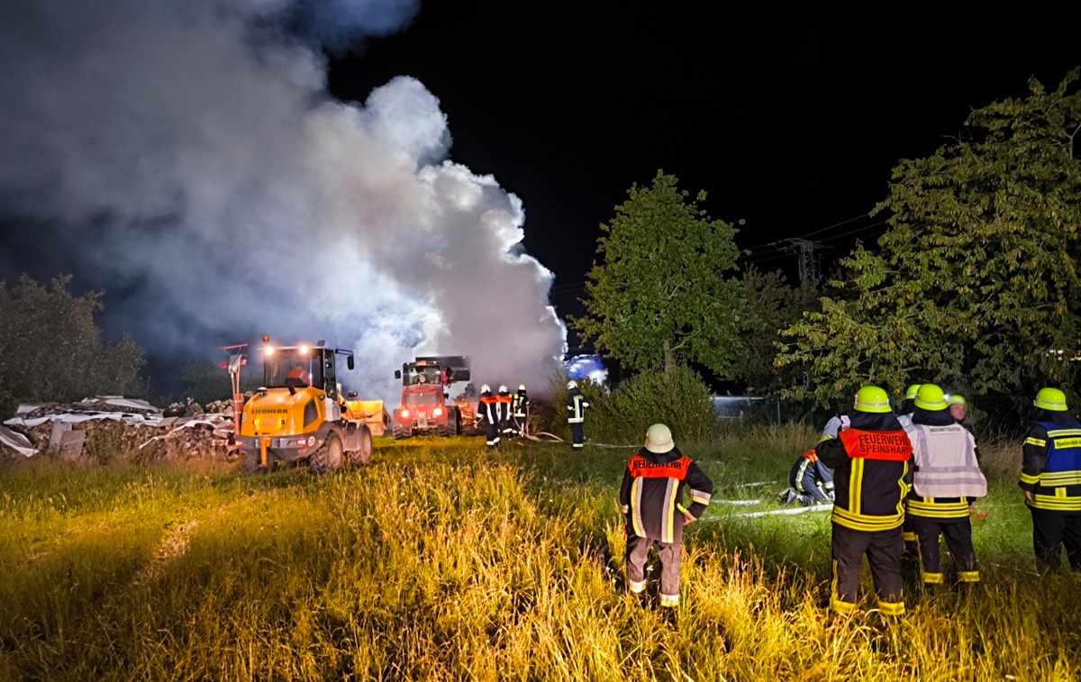 Großalarm in Vorbach: Zwei Altpapiercontainer am Sportheim brannten, außerdem ein Holzschuppen mit Brennholz und Baustoffen. Durch die Hitze wurden auch Fenster eines Gemeindegebäudes beschädigt.