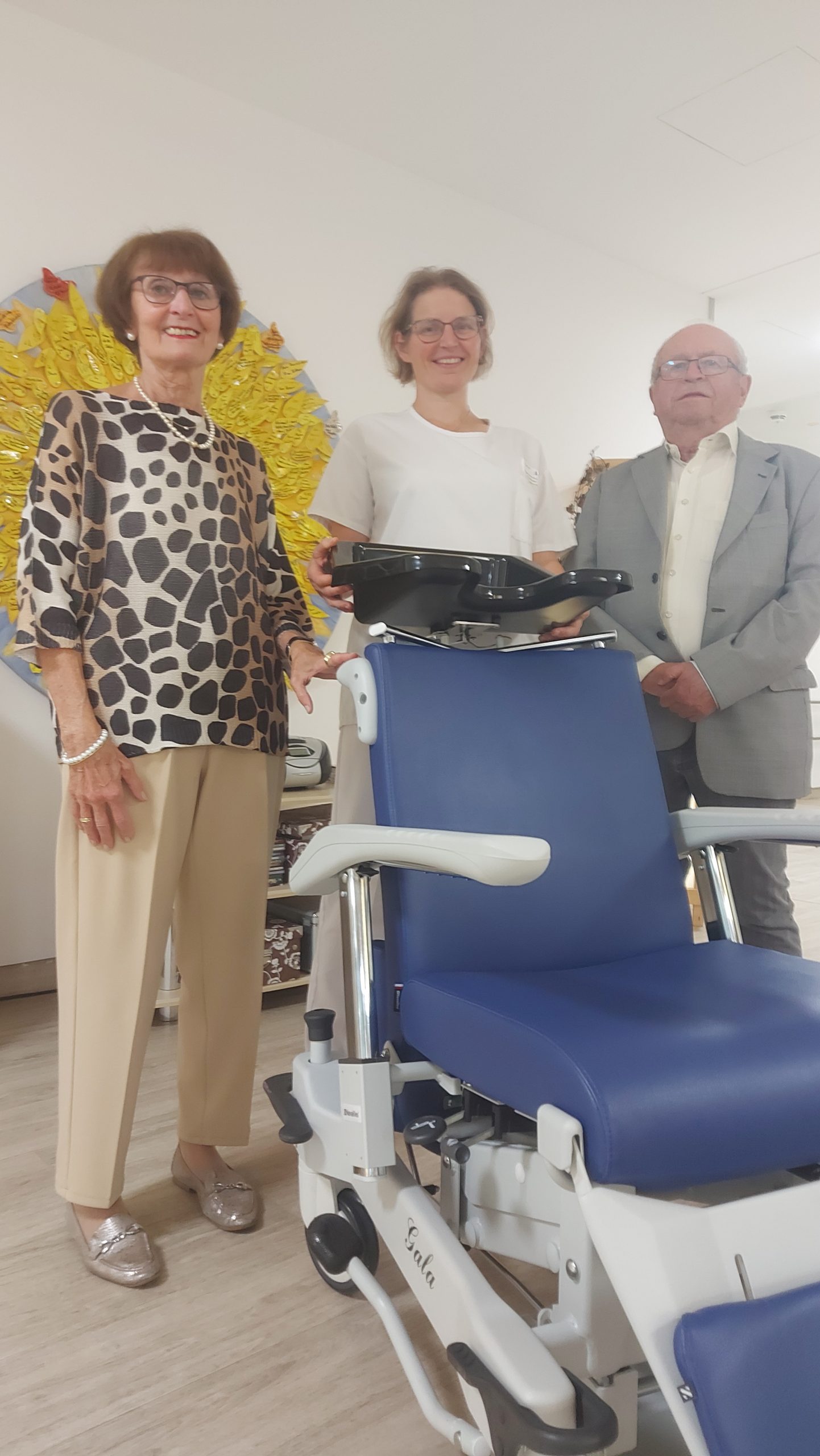 „Die durch den Stuhl ermöglichte zusätzliche Würde und Teilnahme am Leben ist nicht zu unterschätzen“, betonte Chefärztin Dr. Stephanie Kuchlbauer, die sich zusammen mit der Vorsitzenden des Fördervereins bei allen Spendern bedankte, die dieses besondere Hilfsmittel möglich gemacht haben.