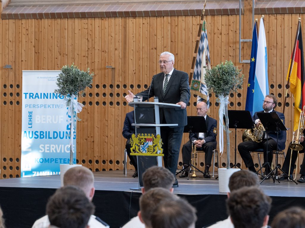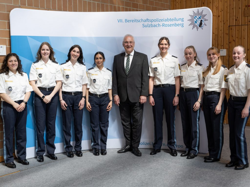 Bayerns Innenminister Joachim Herrmann hat in Sulzbach-Rosenberg rund 110 neu eingestellte Polizeianwärter begrüßt. Die Veranstaltung fand stellvertretend für insgesamt 640 Nachwuchsbeamte statt, die im März 2026 ihren Dienst bei der Bayerischen Polizei begonnen haben.