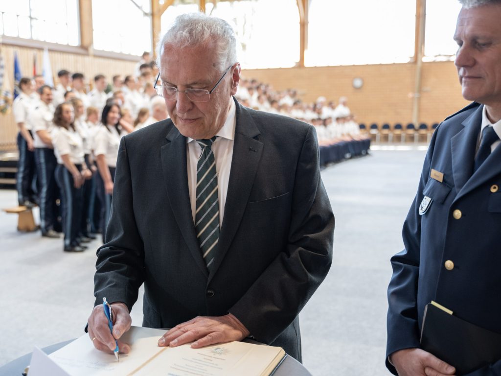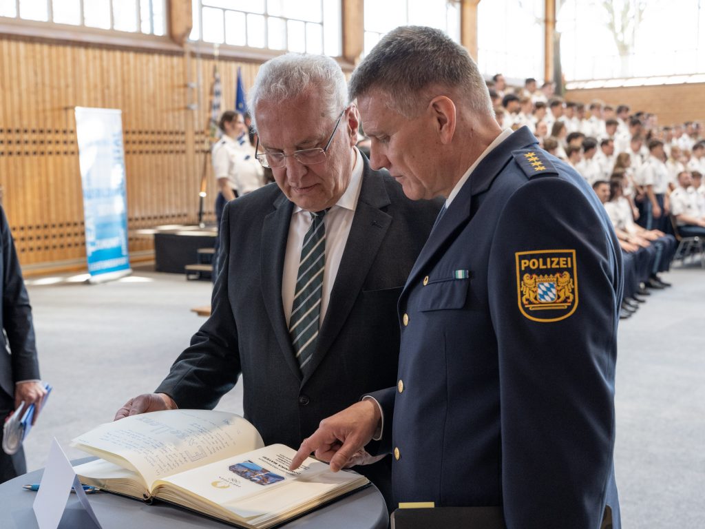 Nach Angaben des Innenministeriums starteten bayernweit 540 angehende Polizeimeisterinnen und Polizeimeister sowie 100 zukünftige Kommissarinnen und Kommissare ihre Ausbildung. Mit ihrer Berufswahl übernähmen sie Verantwortung für Sicherheit und Ordnung sowie für den Schutz der demokratischen Werte im Freistaat, betonte Herrmann bei der Begrüßung.