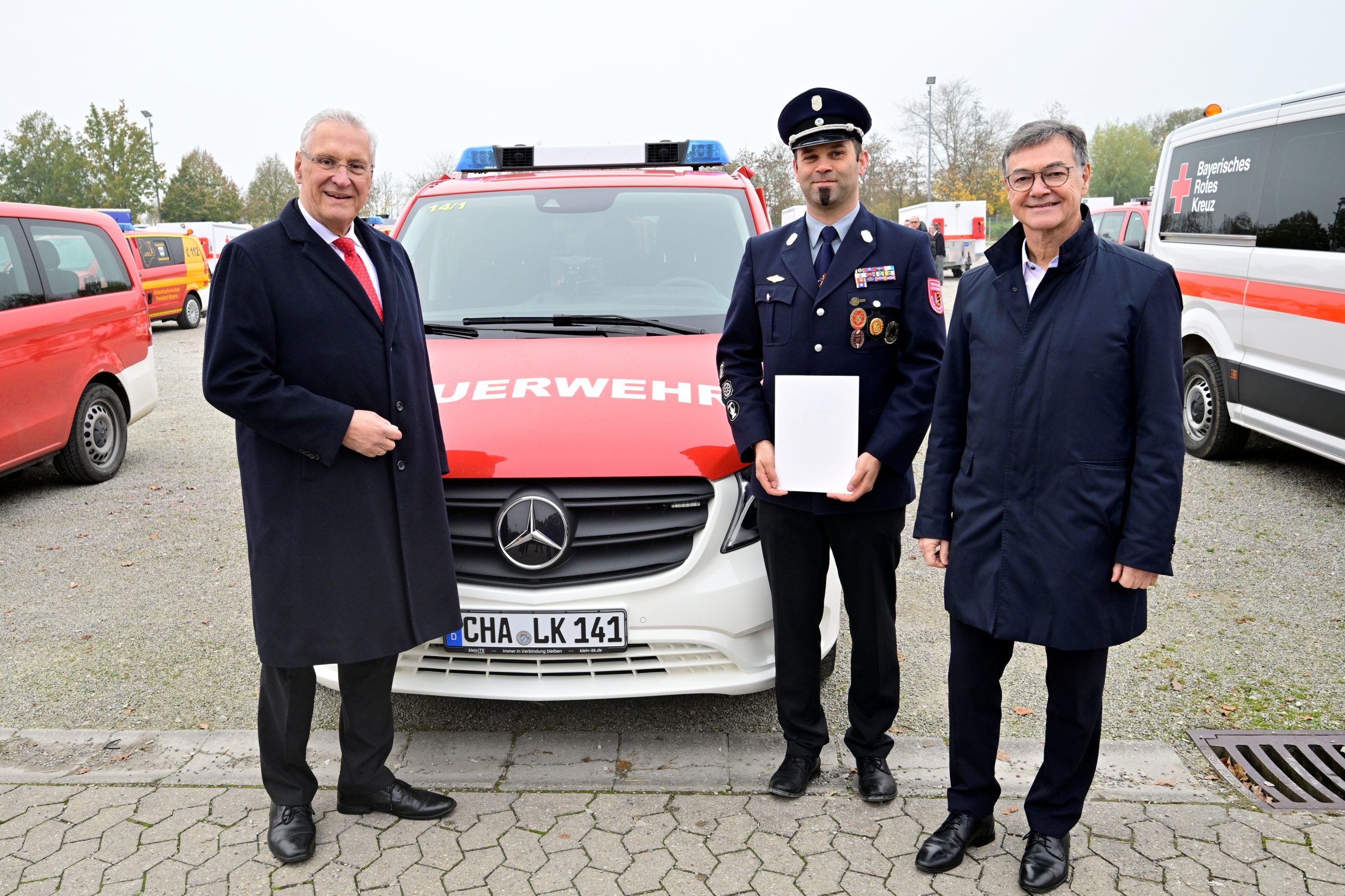 „Die besten finanziellen Mittel und Ausstattungen nützen nichts ohne die Menschen, die tagtäglich ihr Leben riskieren, um anderen zu helfen. Unsere Einsatzkräfte leisten Unverzichtbares, und dafür gebührt ihnen unser aller Dank“, betonte Herrmann in seiner Rede vor den zahlreich anwesenden Vertretern der Feuerwehr, des Technischen Hilfswerks (THW) sowie der freiwilligen Hilfsorganisationen. Die rund 50 Fahrzeuge, die nun ihren Dienst antreten, wurden vollständig vom Freistaat Bayern finanziert. Zusätzlich übergab Herrmann auch rund 25 neue Fahrzeuge, die vom Bund für die Feuerwehr und das THW bereitgestellt wurden.