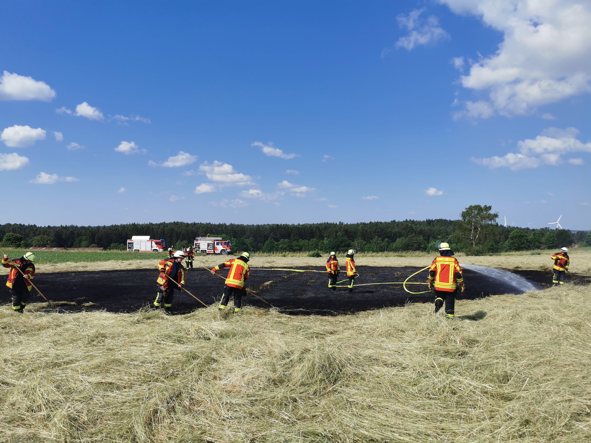 Die Polizei geht nach den vorliegenden Informationen von einer Selbstenzündung der Heuwiese aus. Insgesamt brannte eine Fläche von rund 1600 Quadratmetern. Die Feuerwehren Höflas bei Kemnath und Kemnath waren mit rund 25 Einsatzkräften angerückt. Der Landwirt, welcher mit einem Traktor und Güllefass nach Abschluss der Löschmaßnahmen angerückt war, bewässerte anschließend nochmals die Brandfläche.
