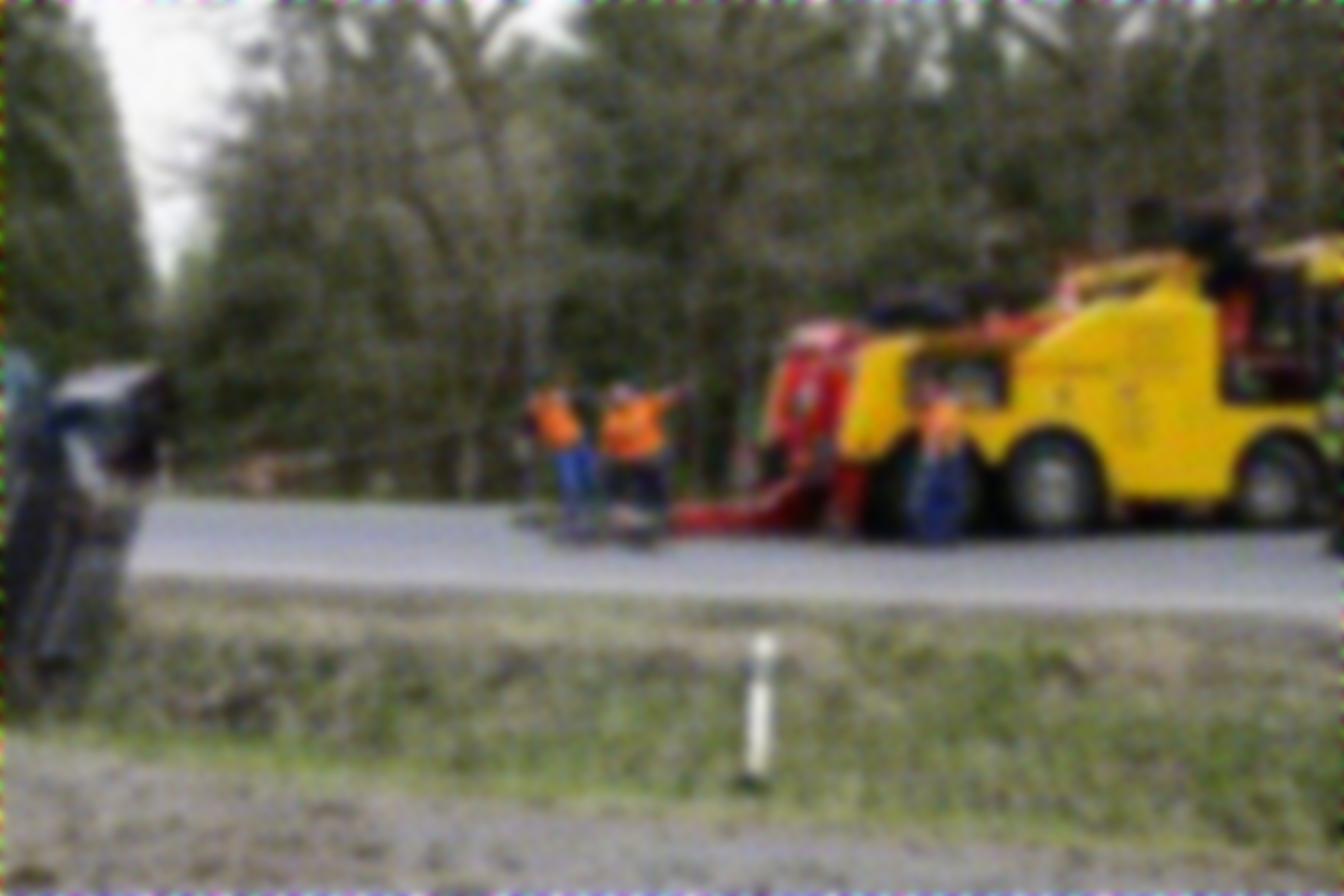 Lkw im Straßengraben festgefahren