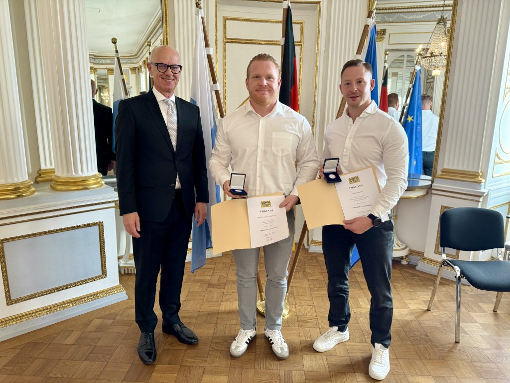 Regierungspräsident Jonas würdigte beide als „beispielhafte Retter, die mit Ruhe, Entschlossenheit und großem Verantwortungsbewusstsein gehandelt haben“.