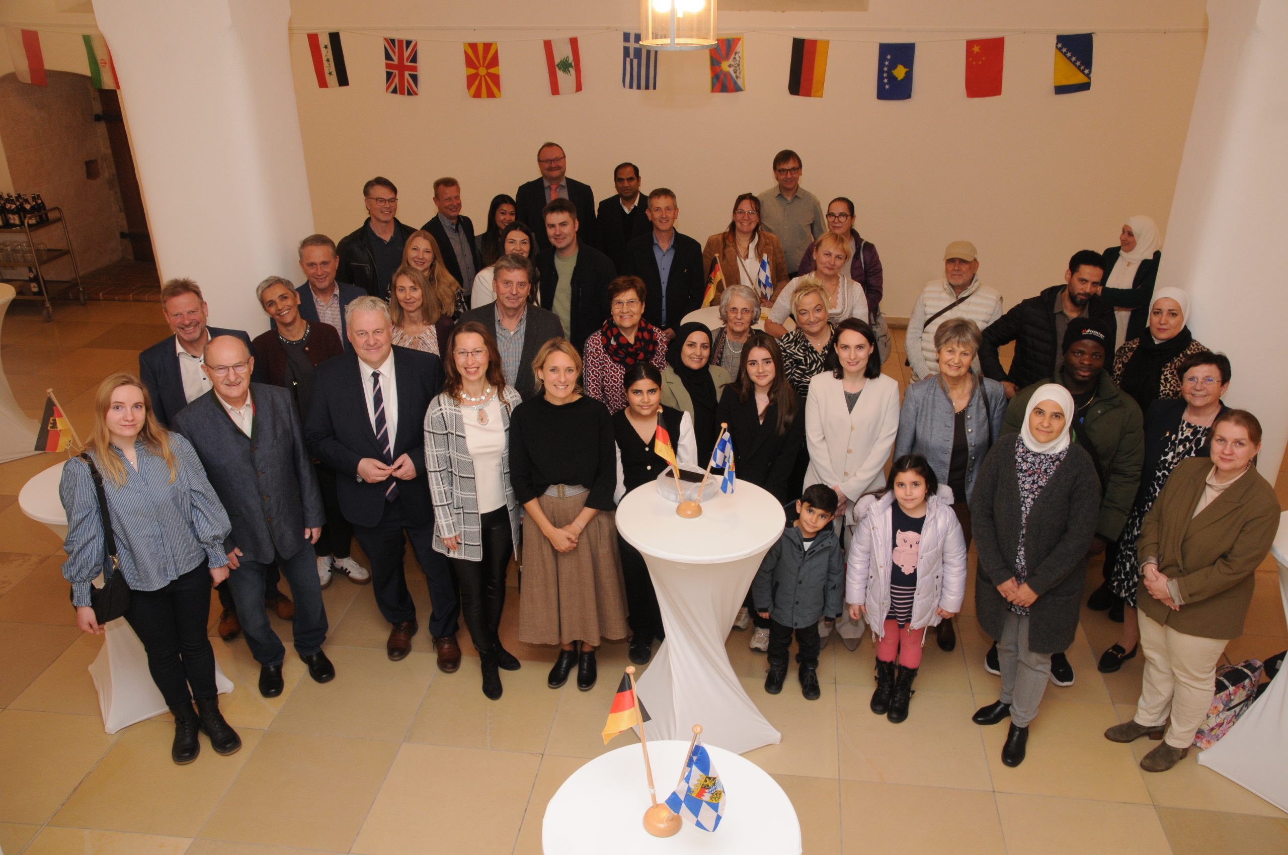 Die Feier bot Gelegenheit für persönliche Geschichten der Neubürger, teils humorvoll, teils nachdenklich. Bürgermeister aus verschiedenen Gemeinden überreichten Geschenke, begleitet von Musik des Duos „Novemberbird“ und einem Büfett vom Kreiskrankenhaus St. Anna.