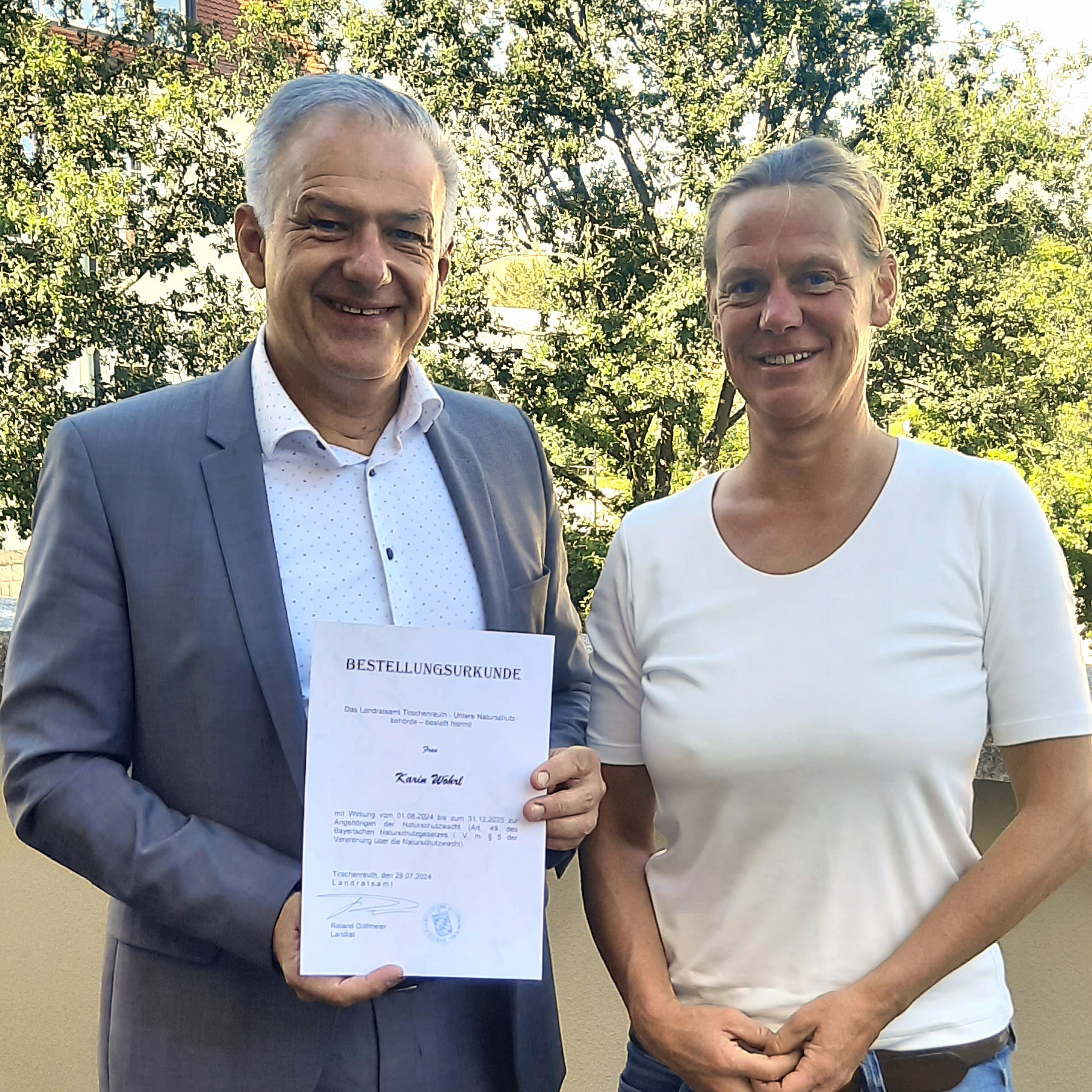 Die 34-jährige Wöhrl war seit Januar 2024 als Anwärterin ehrenamtlich für die Untere Naturschutzbehörde tätig. Während dieser Zeit konnte sie sich intensiv auf ihre Aufgaben vorbereiten und die nötigen Qualifikationen erwerben. Dazu gehörte unter anderem ein Online-Kurs sowie eine einwöchige Ausbildung an der Bayerischen Akademie für Naturschutz und Landschaftspflege in Laufen, die mit einer Prüfung abschloss.