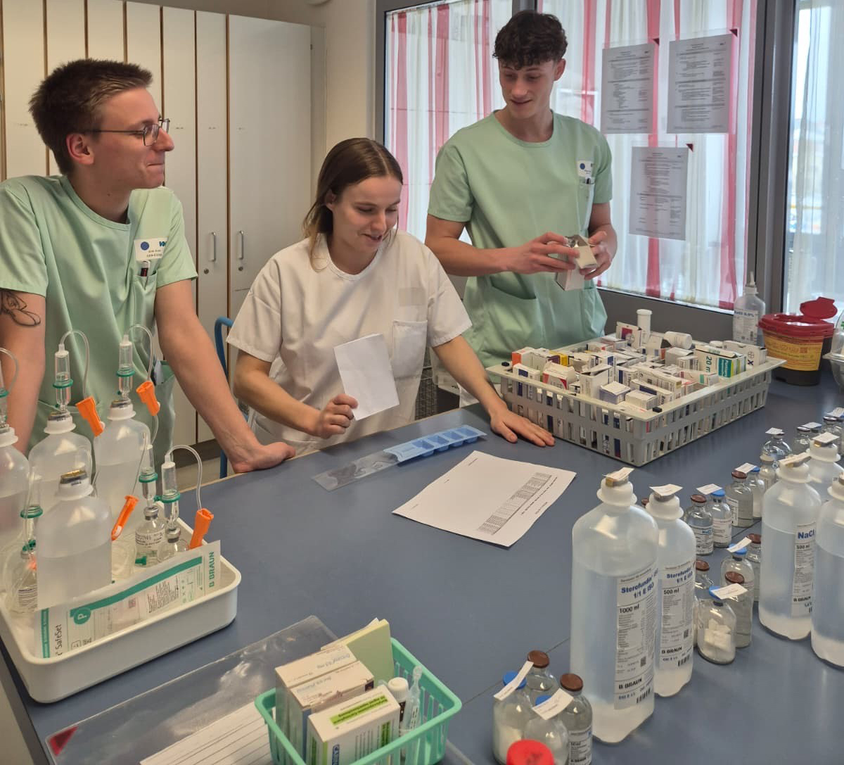 Das Aufgabenspektrum der Nachwuchskräfte war breit gefächert und anspruchsvoll. Dazu zählten unter anderem die Kontrolle der Sauerstoffsättigung bei Herzpatienten, das fachgerechte Wechseln von Verbänden, die Begleitung ärztlicher Visiten sowie organisatorische Tätigkeiten, Telefonate und die interdisziplinäre Zusammenarbeit mit anderen Berufsgruppen. Dabei konnten die Azubis ihre späteren Vorbehaltstätigkeiten realitätsnah einüben.