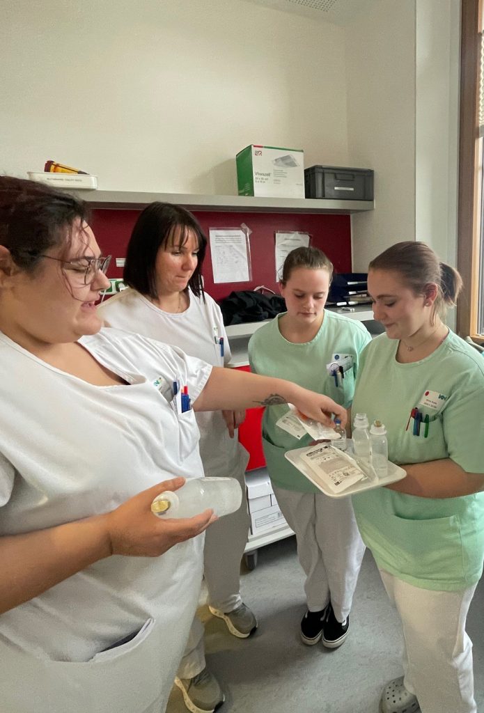 Neben der fachlichen Vorbereitung auf den Pflegeberuf lernen die Auszubildenden auch, ihr Wissen weiterzugeben und sicher in interprofessionellen Teams zu arbeiten – eine wichtige Kompetenz für ihren späteren Berufsalltag.