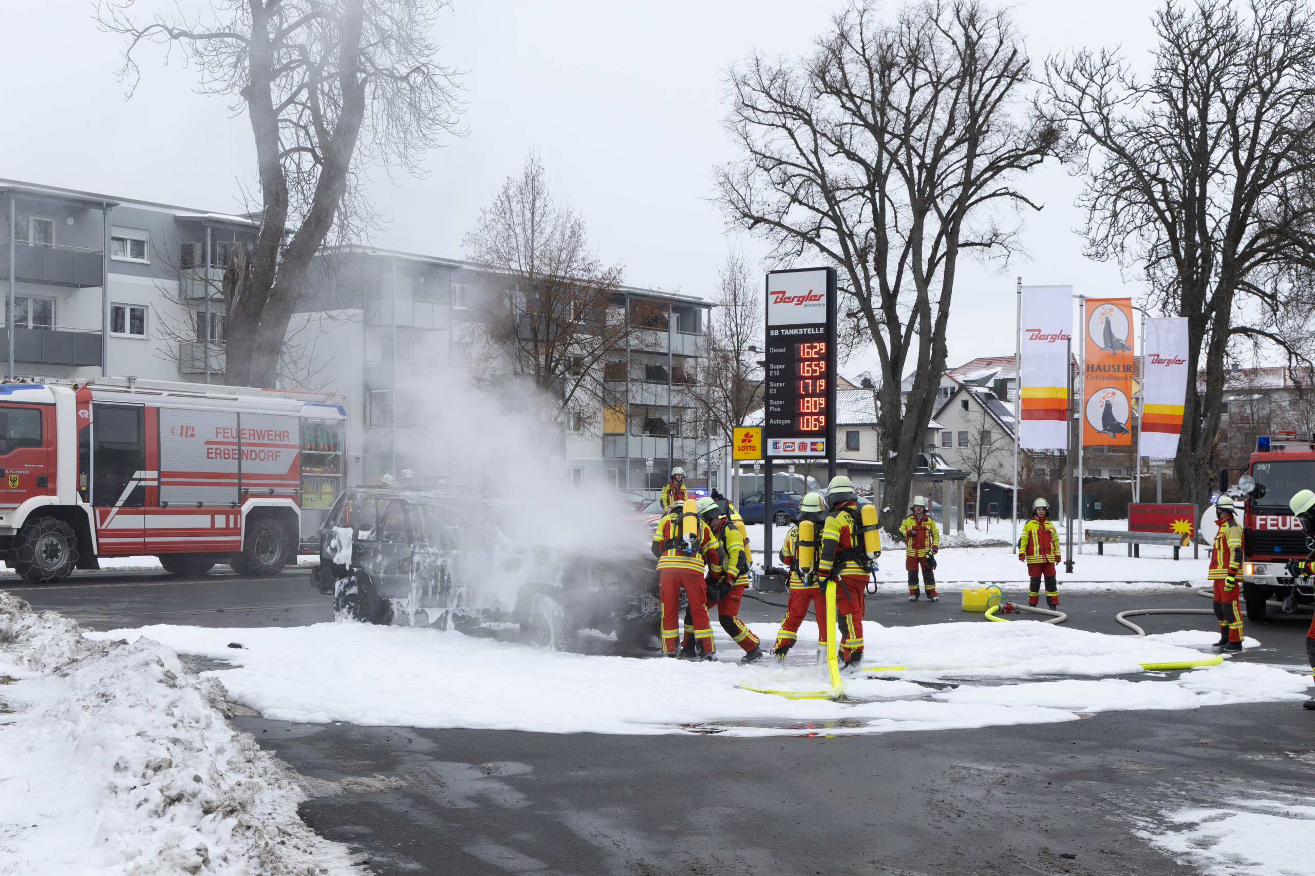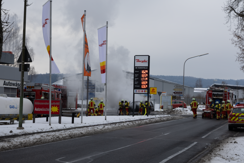 ERBENDORF. Ein brennender Pkw sorgte am Dreikönigstag für einen größeren Feuerwehreinsatz in Erbendorf. Gegen 13.45 Uhr ging bei der Integrierten Leitstelle Nordoberpfalz die Meldung über einen Fahrzeugbrand an einer Tankstelle in der Kemnather Straße ein.