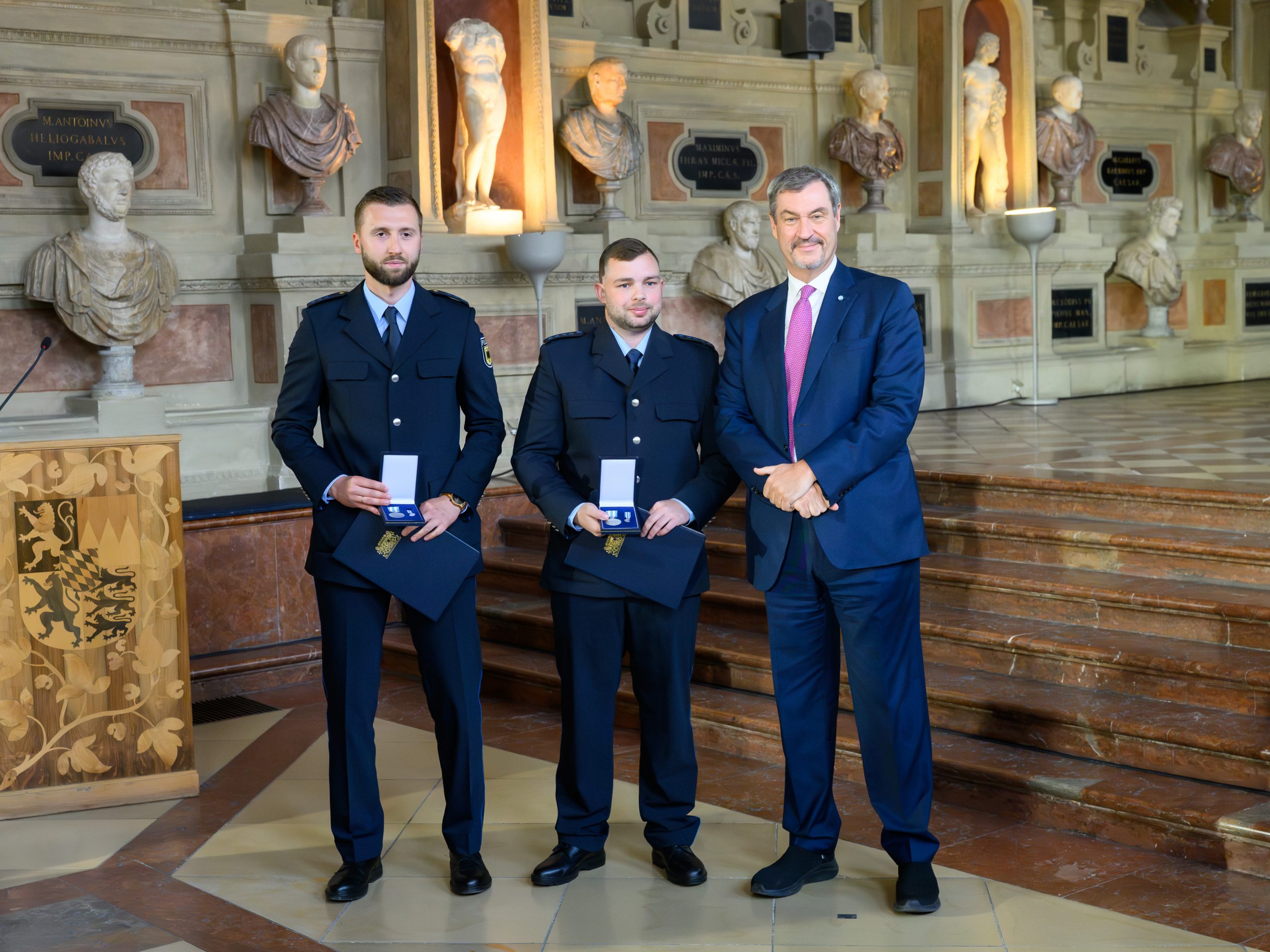WAIDHAUS. Zwei Beamte der Bundespolizeiinspektion Waidhaus sind für einen lebensgefährlichen Rettungseinsatz mit der Bayerischen Rettungsmedaille ausgezeichnet worden. Die Ehrung erfolgte am Montag in der Bayerischen Staatskanzlei.