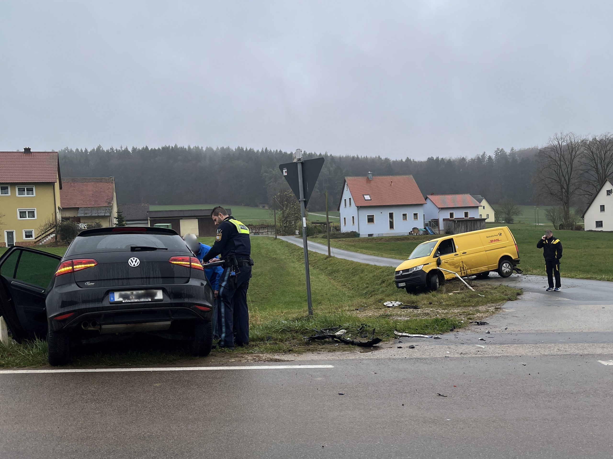 ILLSCHWANG. Bei einem Verkehrsunfall wurde gestern ein Telefonmast in der Nähe der Kreisstraße AS 1 umgerissen. Ein 65-jähriger Fahrer eines VW Golf fuhr auf der vorfahrtsberechtigten Kreisstraße in Richtung Staatsstraße 2164. In dem Moment näherte sich eine 31-jährige Postzustellerin mit einem VW Transporter aus einer Seitenstraße und wollte die AS 1 überqueren. Dabei übersah sie den von rechts kommenden Golf.