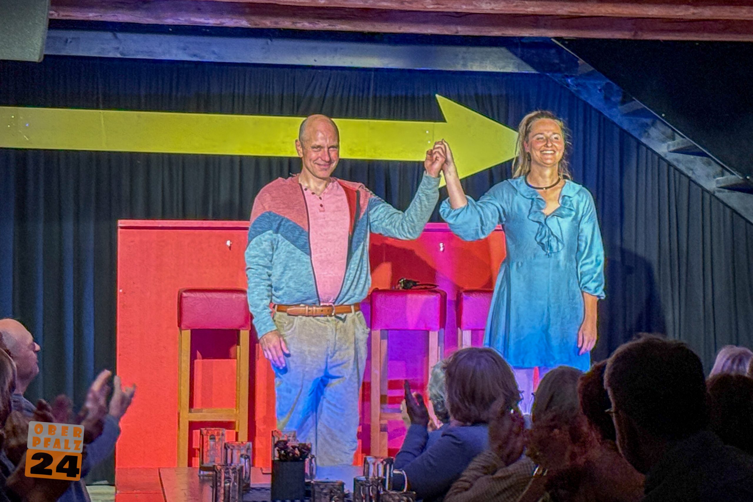 Barbara Trottmann, für die der Auftritt am Schafferhof fast ein Heimspiel war – sie stammt aus der bekannten Trottmann-Dynastie in Neustadt an der Waldnaab – glänzte als moderne, zweifelnde, witzige Lisa. Mit ihrer Präsenz füllte sie mühelos die Bühne. Tobias Ostermeier gab den sympathisch überforderten Martin mit ebenso viel Charme wie Körperkomik – eine gelungene Paarung, bei der die Chemie stimmte.