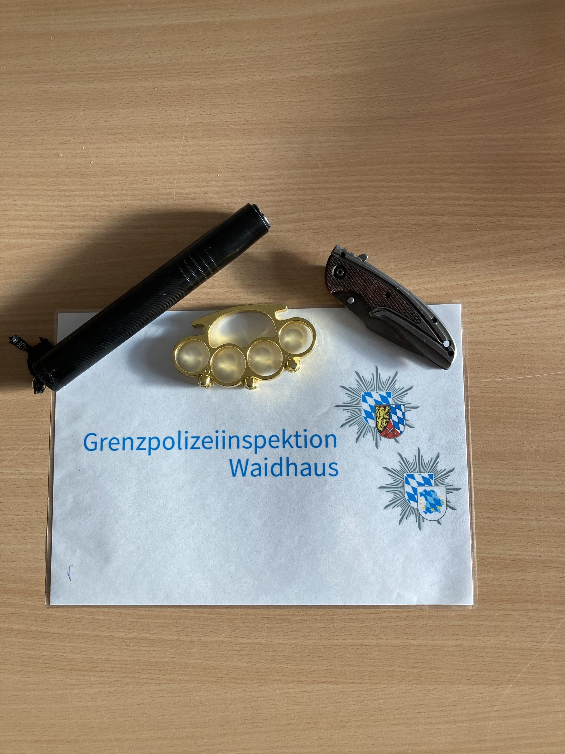 Der Pkw, besetzt mit zwei jungen Männern aus Rumänien, wurde von den Beamten genauer unter die Lupe genommen. In der Mittelkonsole des Fahrzeugs stießen sie auf einen Schlagring, einen Teleskopschlagstock und ein Einhandmesser – alles griffbereit und ohne Nachweis eines berechtigten Interesses. Weitere Durchsuchungen des Fahrzeugs sowie der beiden Insassen verliefen ergebnislos.