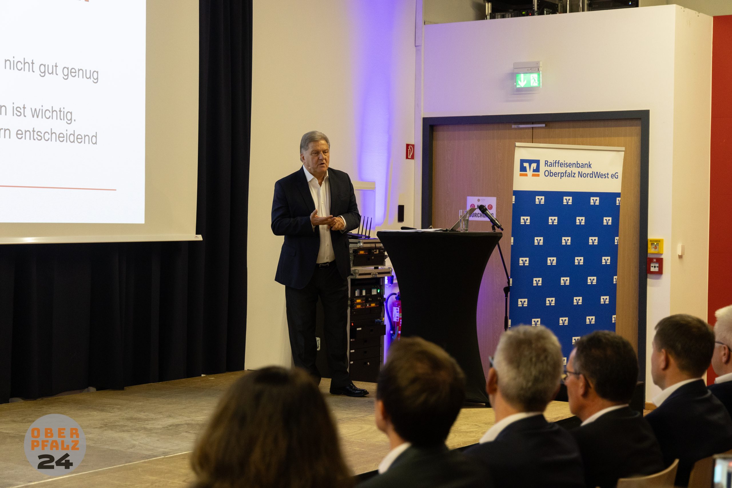 Kemnath – Rund 100 Führungskräfte aus der Region folgten der Einladung der Raiffeisenbank Oberpfalz NordWest zu einer inspirierenden Abendveranstaltung im Foyer der Mehrzweckhalle in Kemnath. Im Mittelpunkt stand ein Vortrag von Markus Hörwick, dem langjährigen Pressesprecher des FC Bayern München. Nach dem Motto „Was Menschen in ‚langen Hosen‘ von Menschen ‚in kurzen Hosen‘ lernen können“ bot Hörwick spannende Einblicke in die Welt des Spitzenfußballs und zog Parallelen zur Wirtschaft.