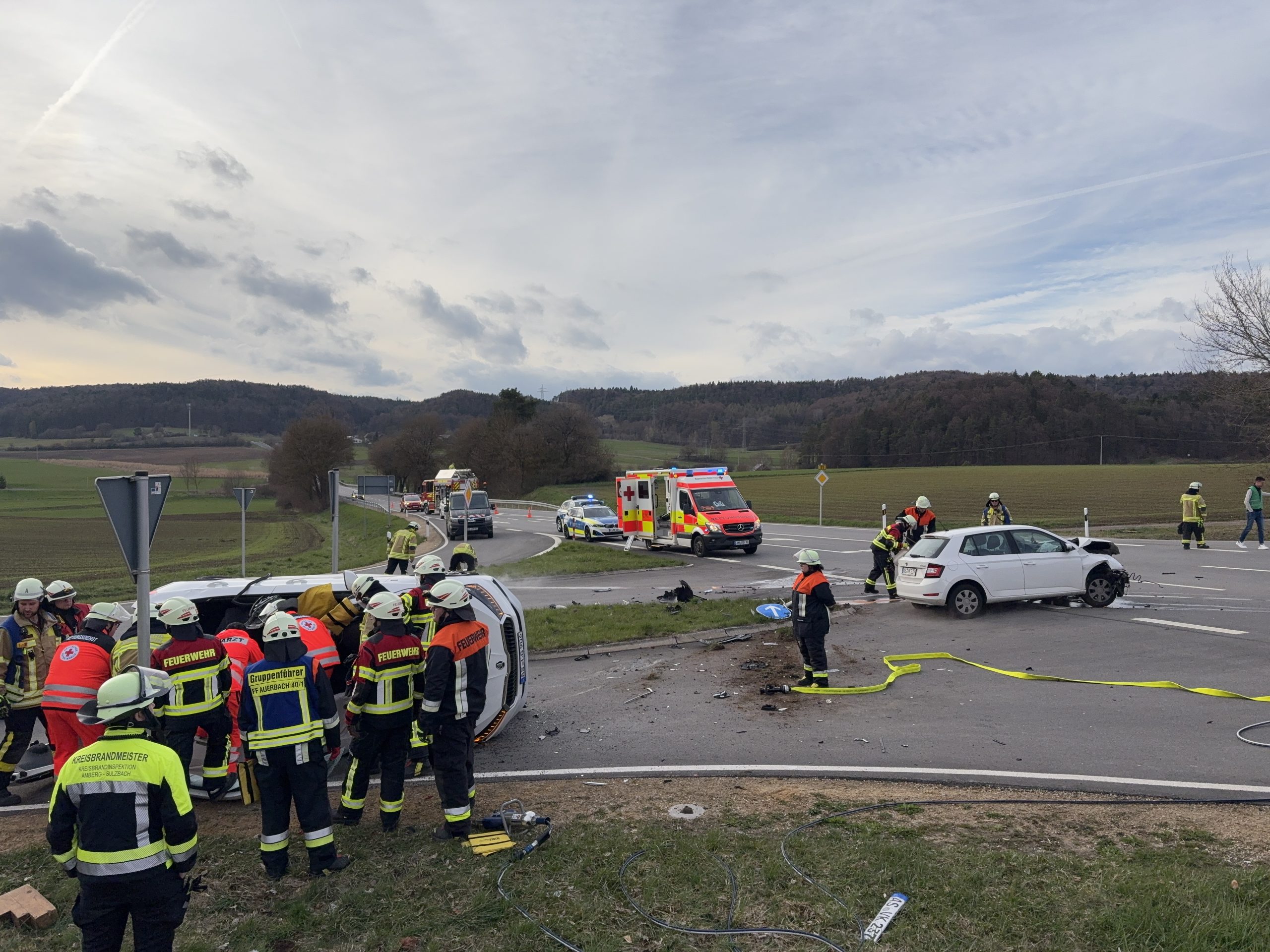 Nach Angaben der Polizei war der Fahrer eines Skoda von Kürmreuth kommend auf der AS 16 unterwegs und wollte die B 85 in Richtung Königstein überqueren. Dabei übersah er eine vorfahrtsberechtigte Autofahrerin, die ebenfalls mit einem Skoda von Auerbach in Richtung Amberg fuhr. Im Einmündungsbereich kam es daraufhin zum Zusammenstoß beider Fahrzeuge.