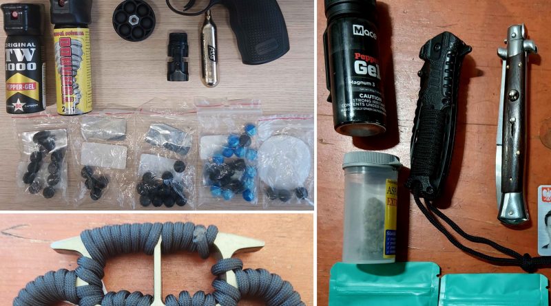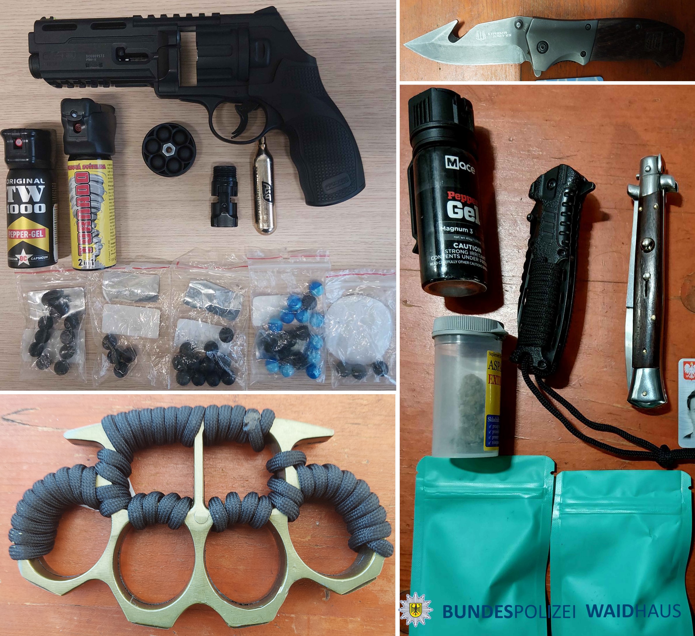 WAIDHAUS. Ein arbeitsreiches Wochenende für die Bundespolizeiinspektion Waidhaus: Bei Kontrollen an der A6 stellten Beamte zahlreiche verbotene Gegenstände sicher – darunter eine geladene Gasdruckpistole, verbotene Messer, Pyrotechnik sowie mehrere Mengen Marihuana.