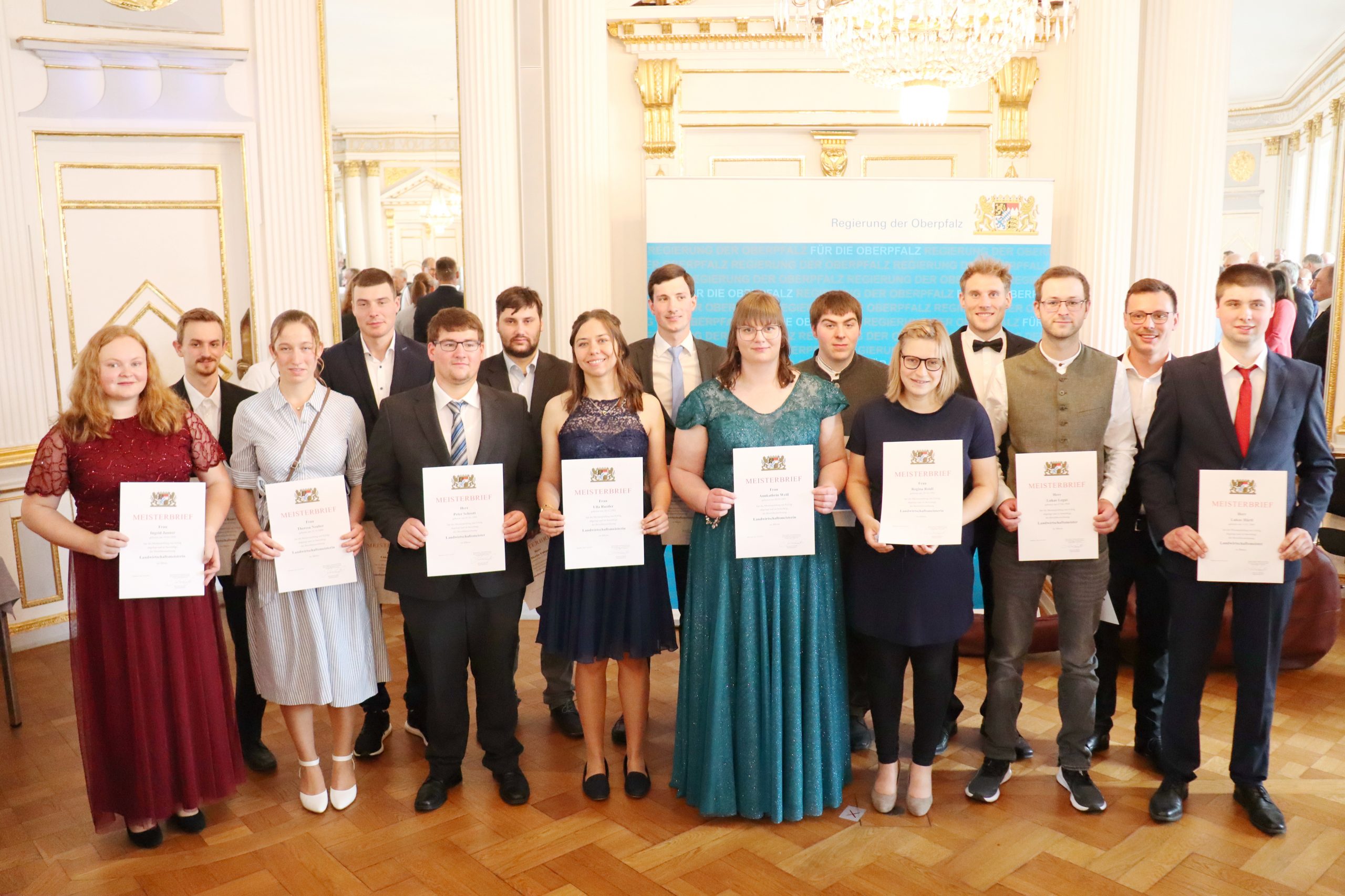 REGENSBURG. Applaus erfüllte den Spiegelsaal der Regierung der Oberpfalz, als 15 junge Landwirtinnen und Landwirte ihren Meisterbrief entgegennahmen. Nach zwei intensiven Jahren der Weiterbildung wurden sie im Rahmen einer Feierstunde für ihren erfolgreichen Abschluss als Meisterin und Meister der Landwirtschaft ausgezeichnet.