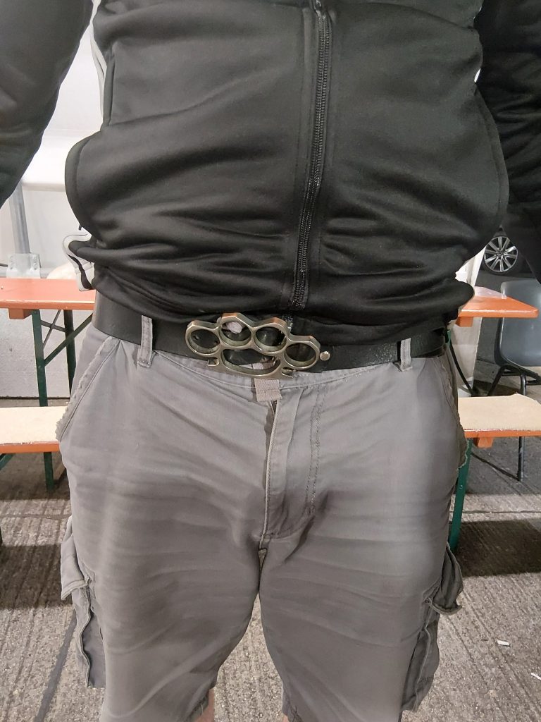 Die vermeintliche Gürtelschnalle war tatsächlich ein Schlagring. Foto: Bundespolizei